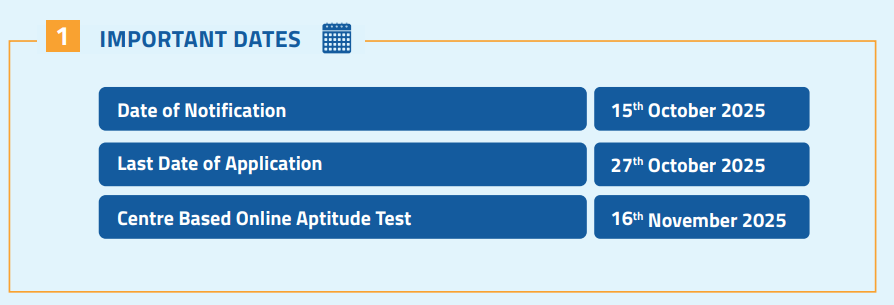 - Candidates with at least one year experience in Banking, Financial Services and Insurance (BFSI) Sector as on 01.10.2025 shall be eligible for relaxation of upper age limit by 1 year and they shall not exceed 28 years of age (should be born on or after 01.10.1997).