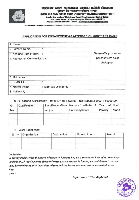 • Director, Indian Bank Rural Self-Employment Training Institute, 258, Lenin Street, Kuyavarpalayam, Puducherry 605013.